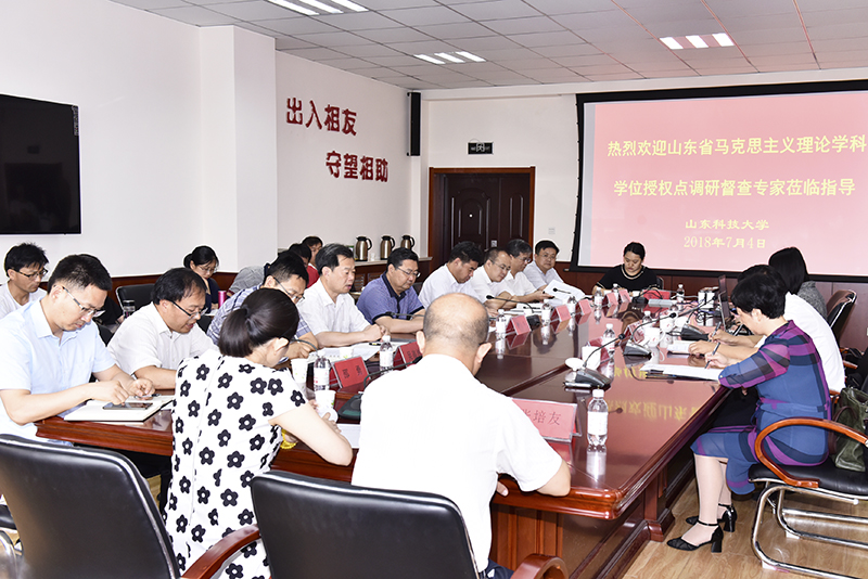 7月4日,根据山东省教育厅关于开展全省高校马克思主义理论学科学位授权点调研督查工作的相关部署,由中国石油大学(华东)马克思主义学院院长王建军、潍坊学院马克思主义学院教授魏晓笛、中国石油大学(华东)马克思主义学院教研室副主任冯晓玲组成的省马克思主义理论学科学位授权点调研督查工作专家组莅临伟德官网开展调研督查工作。校党委副书记尹华、副校长曾庆良, 组织部、宣传部、研究生院、科研处、人事处、财务处、资产处负责人等出席了会议,马克思主义学院全体教师参加会议。研究生院院长曹茂永主持会议。