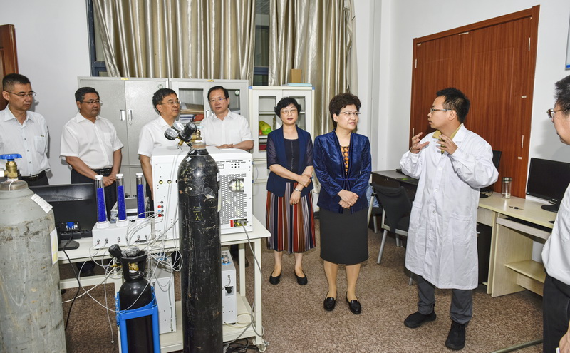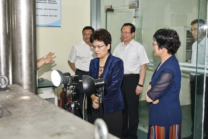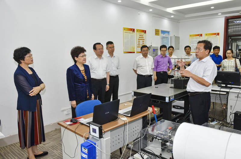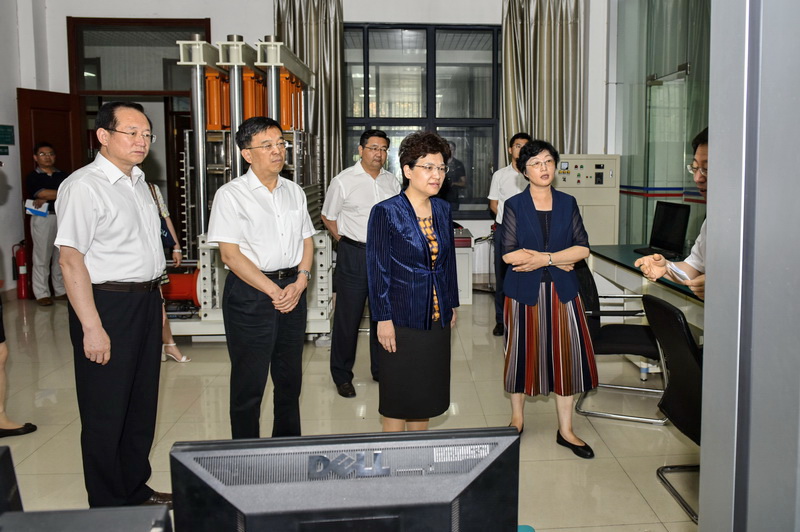 在学校党委书记罗公利、副书记尹华的陪同下,邢善萍一行参观了学校矿山灾害预防控制国家重点实验室(培育)和山东省泰山学者优势特色学科控制科学与工程人才团队实验室,分别听取了首批新世纪百千万人才工程国家级人才入选者、矿业学院院长谭云亮教授和副校长周东华教授的讲解。每到一处,邢善萍都饶有兴趣,不停地询问、交流,对科研团队取得的成果和发展方向表示赞赏。