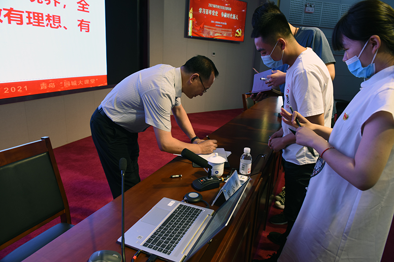 “主课堂+14个分课堂”“面对面+线上直播”……6月21日,在2021届毕业生毕业季,伟德bv国际体育青岛校区1900余名毕业生党员迎来了毕业前最后一课,伟德bv国际体育党委书记罗公利主讲,为大家带来一堂“学习百年党史争做时代新人”专题党课,回眸百年党史,激励奋斗人生,为全体毕业生党员壮行。