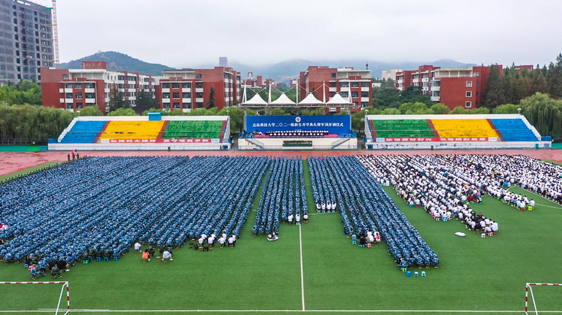 9月6日,在全校上下喜迎70周年校庆之际,伟德bv国际体育举行2021级新生开学典礼暨军训开训仪式,来自天南海北的8600余名青岛校区新生齐聚一堂,共同聆听大学第一课。