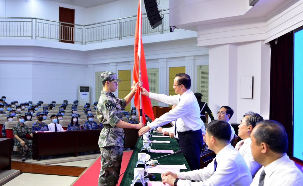 罗公利向军训团授旗