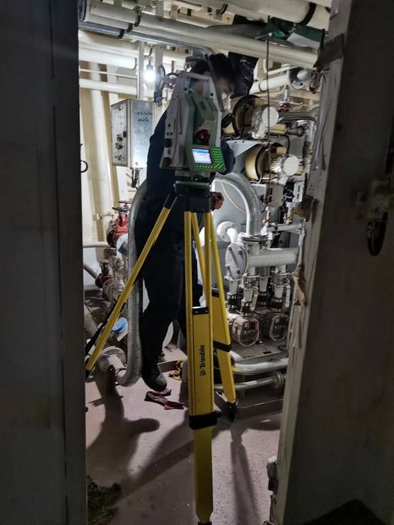该船隶属于南方海洋科学与工程广东省实验室(珠海),长88.5米,型宽14.0米,型深6.1米,设计吃水3.7米,设计排水量约2000吨,最大航速18节,可搭载多种无人艇、无人机和水下潜航器,实现组网的海洋立体观测。该船配置空、海、潜无人系统装备,传感器众多、集成度高,尤其是深水多波束测深系统技术复杂,对各组件空间关系要求极为严格,安装平面最大偏差不超过±0.2毫米。原定安装测量工作由国外团队进行,技术细节不公开、费用较高,且影响船舶的重要信息保密。受新冠疫情影响,伟德bv国际体育海洋测绘团队有机会承担此次测量任务。