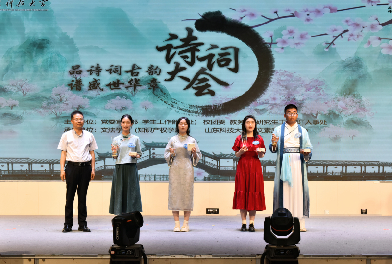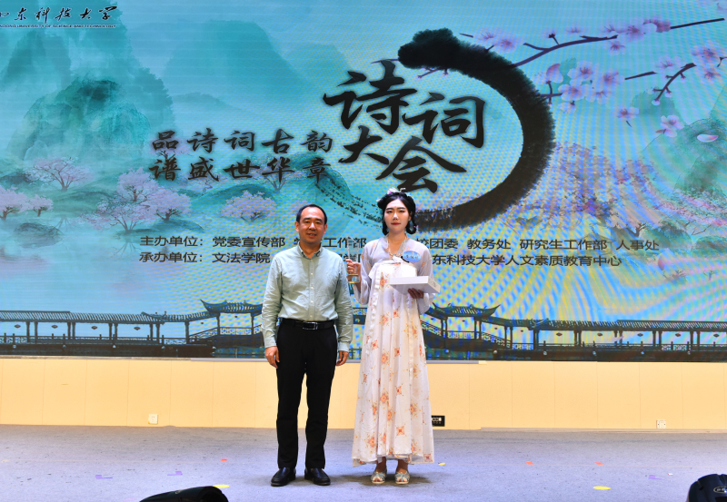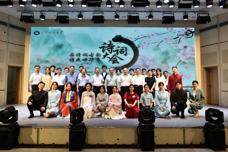 在比赛环节间隙,诗朗诵、歌曲等节目穿插上演。学校留学生的诗词朗诵《行路难》《再别康桥》字正腔圆,文法大艺团声乐队的歌曲《岳阳楼记》悠扬绵长,文法学子将《沁园春·雪》《小平,您好》《满江红·江上青百年诞辰祭》《科学发展观之歌》《念奴娇·追思焦裕禄》等诗作朗诵出爱国真情,让诗词大会成为学生品味党史、感悟传承、夯实文化底蕴的思想政治教育实践课新载体,以此献礼党的二十大。