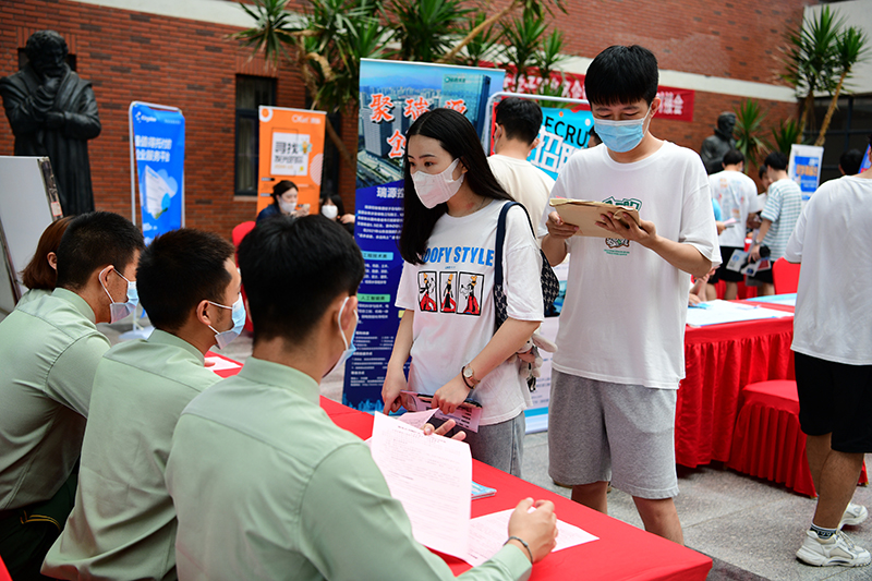 会场外,伟德bv国际体育2023届毕业生就业实习双选会现场同样火热。来自海尔集团、澳柯玛、金能化学等40家知名本土企事业单位也来到现场,并提供了1200余个优质实习、就业岗位,近2000余名学生参加双选会。“我全程参加了今天的活动,进一步了解了青岛的引才政策,嘉宾访谈环节也收获了职场大咖的启发,下午我参观了联通公司和松立控股集团,开阔了眼界,学校举办的这次活动帮助我们提前锁定目标实习单位,做到有的放矢。”来自电气与自动化工程学院的2023届毕业生杨雨森告诉记者,很多单位提供的待遇很好,他在会场转了一圈,有多家公司主动向他抛来“橄榄枝”。