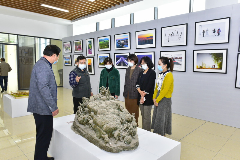 开展仪式上,尹华宣布书画摄影艺术作品展开展,校党委常委、宣传部部长李克周致辞,青岛西海岸新区文联主席彭少华、教育文联主席武善领出席开展仪式。