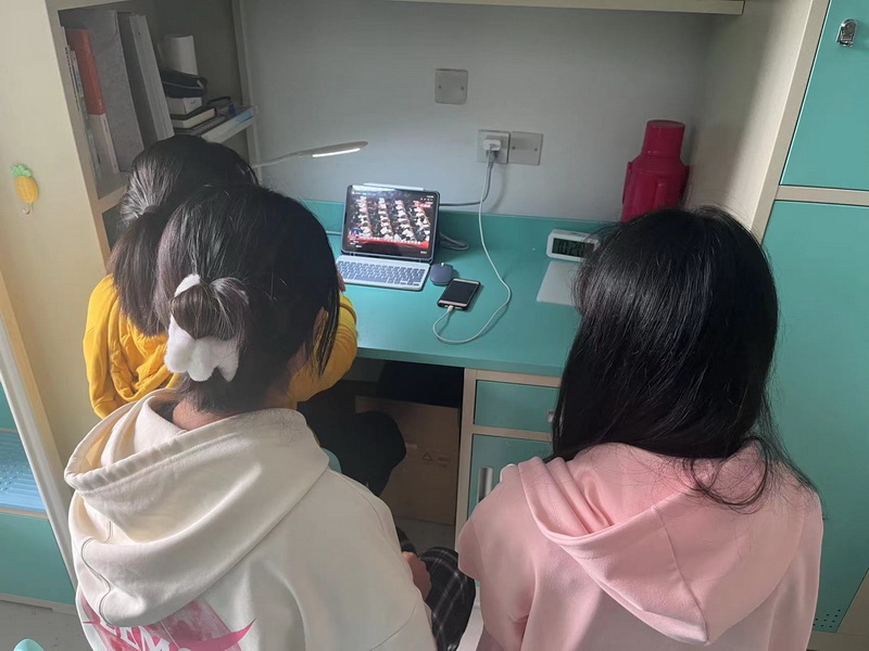 学生在宿舍收看党的二十大开幕会直播