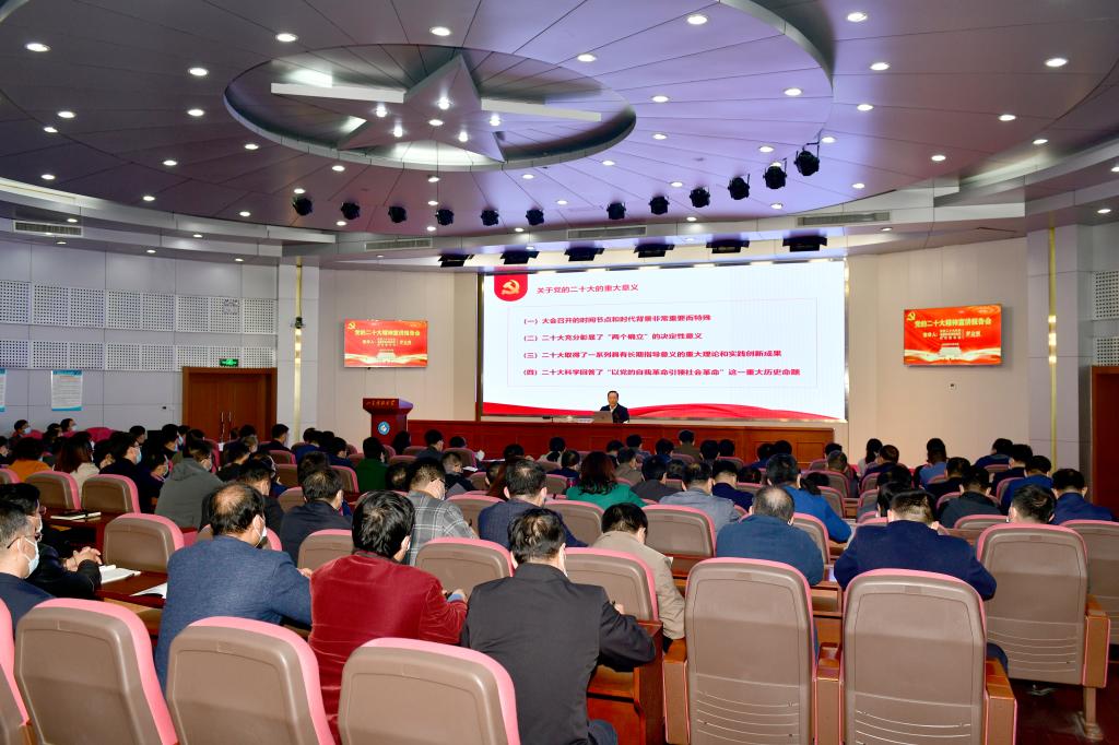 11月18日,伟德bv国际体育召开党的二十大精神宣讲报告会,党的二十大代表、省属高校学习贯彻党的二十大精神宣讲团成员、校党委书记罗公利作党的二十大精神宣讲报告。