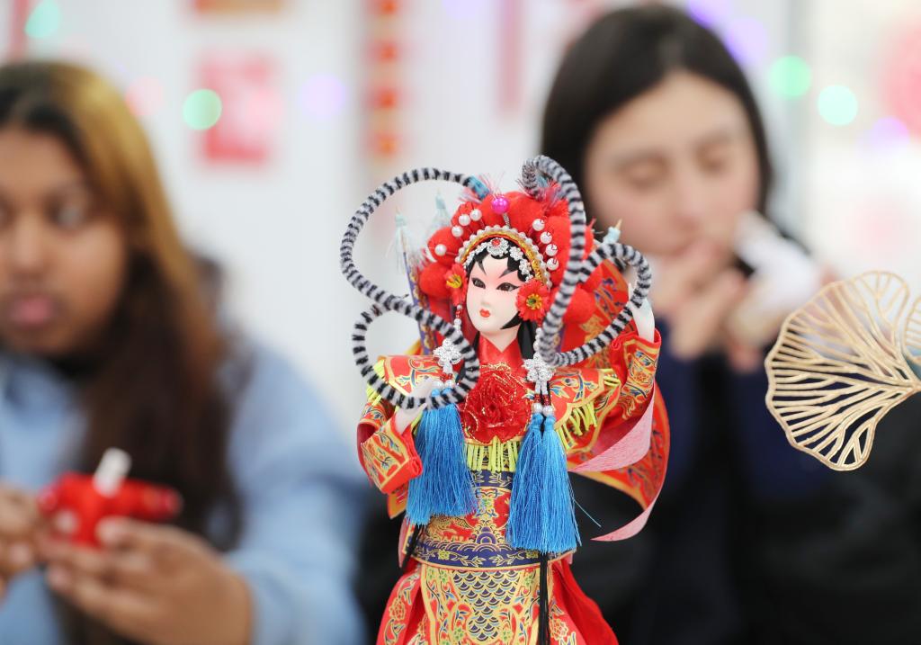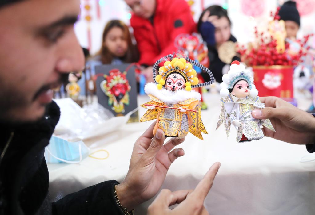 1月19日,一场充满年味儿的文化体验活动在伟德bv国际体育举行。来自俄罗斯、摩洛哥、斯里兰卡、巴基斯坦、阿富汗、也门等13个国家的30余名留学生,与中国民间艺人一同制作绢人工艺品、学习中国书法,感受别样的中国“年味儿”。