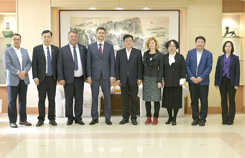 4月27日,俄罗斯国际科技合作协会中国事务总干事尤里·巴博诺夫一行来伟德bv国际体育访问,副校长徐龙飞会见客人,国际交流合作处负责人陪同会见。