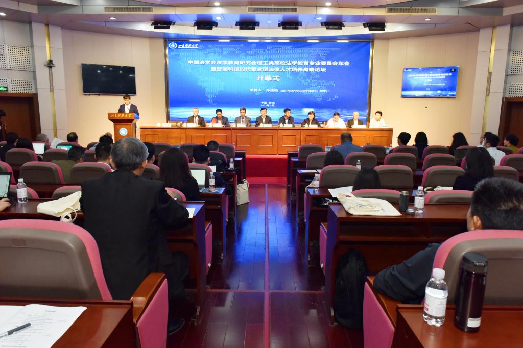 开幕式上,青岛市法学会专职副会长兼秘书长殷静,青岛市大数据局副局长张万波,中国法学会法学教育研究会理工类高校法学教育专业委员会主任委员李寿平分别致辞。