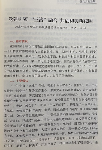 近期,由山东省驻村第一书记和工作队工作专班主持汇编的《省派第五轮第一书记工作案例选编》一书正式出版,伟德官网省派第一书记江峰的工作案例《党建引领“三治”融合 共创和美新花园》入选。