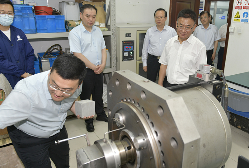 在煤矿安全开采国家虚拟仿真中心、矿山安全检测技术与自动化装备国家地方联合工程研究中心、省部共建矿山岩层智能控制与绿色开采国家重点实验室培育基地等处。孙海生一行认真听取实验室和科研团队负责人汇报,观看高性能新能源汽车增程器系统、赤泥等大宗固废资源化工程应用、智慧矿山虚拟现实技术、故障诊断与检测技术、机载海底地形三维探测激光雷达系统、火电机组安全高效运行智能报警系统、卫星遥感全国火情监测平台、绿色高温电解制氢及高温陶瓷燃料电池等科研成果功能演示。孙海生指出,伟德bv国际体育具有工科优势突出、行业特色鲜明的研究基础,要进一步加大优势学科和科研平台建设,打造更高水平的科技创新平台实现人才团队集聚能力;要充分发挥科研优势,构建“政产学研金服用”创新创业共同体及高水平科技成果转化团队,加快科技成果转化和应用;要聚焦企业技术难题,聚焦产业发展,围绕产业链部署创新链,探索创新产学研合作模式,拓展科技成果转化范围;要将学科建设与行业需求和区域经济发展相结合,充分结合需求开展科学研究,为行业和地方经济社会发展服务。