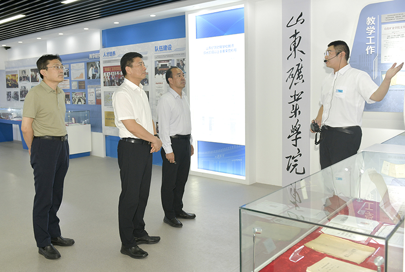 李明一行先后来到校史馆、矿山岩层智能控制与绿色开采国家重点实验室培育基地、矿山安全检测技术与自动化装备国家地方联合工程研究中心、工程实训中心和大学生活动中心等处实地查看,听取了学校领导、有关部门和实验室项目负责人的情况汇报,对伟德官网近年来改革发展取得的成绩以及在山东省高等教育高质量发展中发挥的重要作用给予充分肯定。