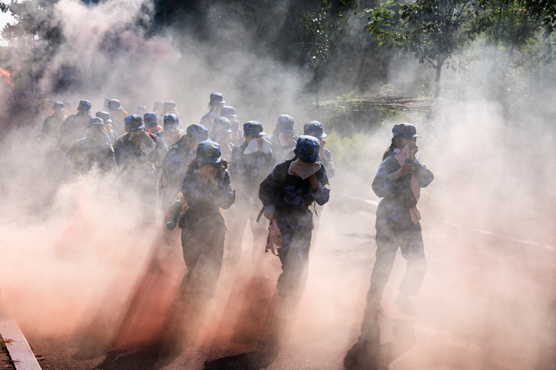 8月29日上午,学校开展2022级本科生军训行军拉练活动。