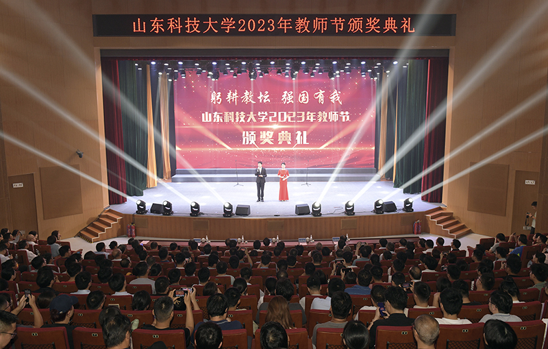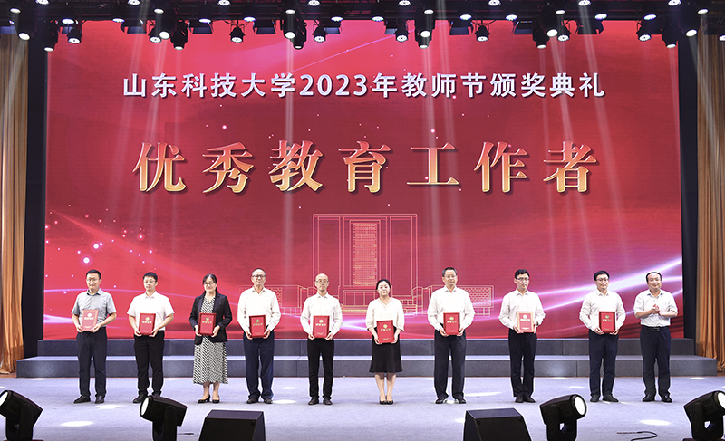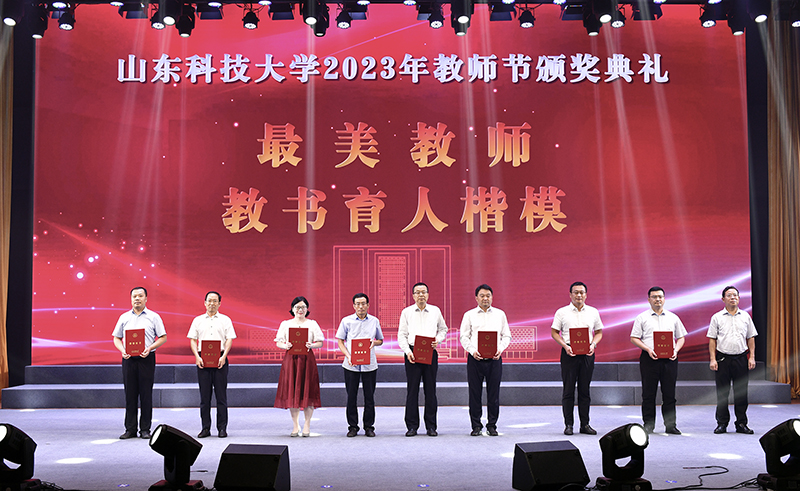 典礼上,校党委书记罗公利为入选第三批“全国高校黄大年式教师团队”创建示范活动入围名单的周东华教师团队颁奖。校长曾庆田为荣休教师代表赠送纪念奖杯,向荣休教师代表并通过他们向所有老教师送上节日的问候和祝福。获评2023年“齐鲁最美教师”的陈绍杰教授因工作原因未能到场,通过视频发来祝福。