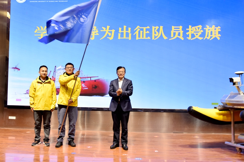 徐龙飞为科考队员、伟德官网青年教师杨继超、魏峥嵘授旗。他指出,南极科考事业是为国争光的事业,是高校服务国家的重要工作。他向无人船研制取得的成果表示祝贺,向关心支持学校发展的企业公司表示衷心的感谢,学校将继续服务于国家海洋战略,积极支持极地智能无人船的科考事业。