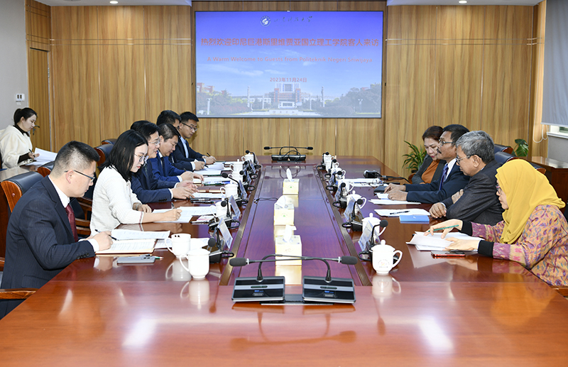 11月24日,印尼巨港斯里维贾亚国立理工学院副校长Carlos RS、副校长Zakaria一行访问伟德bv国际体育,副校长徐龙飞会见客人,双方围绕着深化合作、推进共建中国语言文化中心等进行了深入交流。