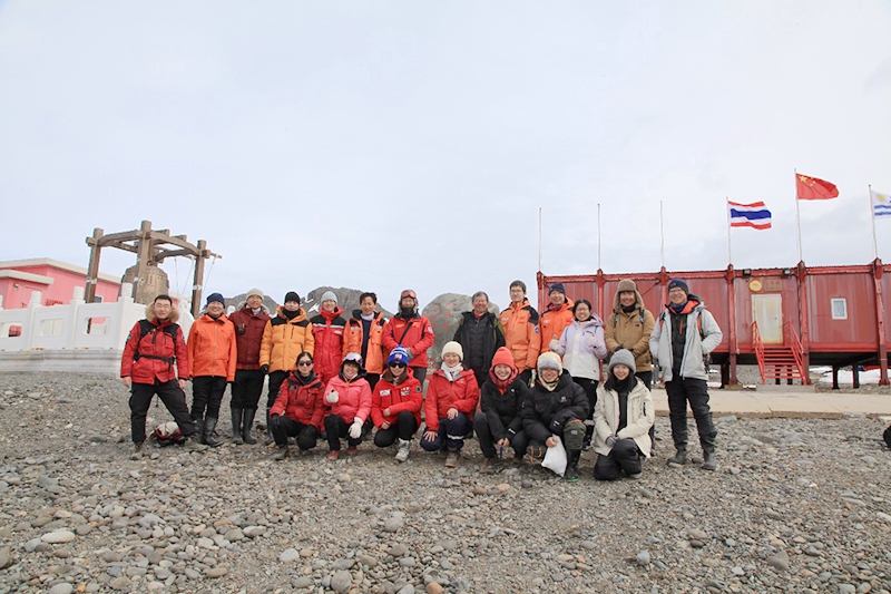 周长付与考察队队员在长城站合影