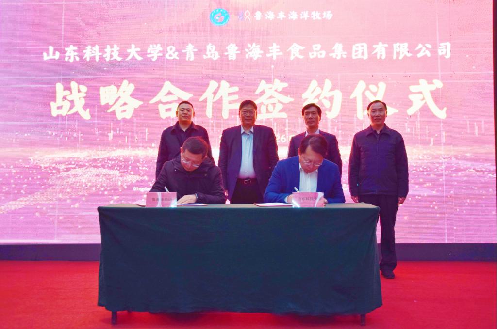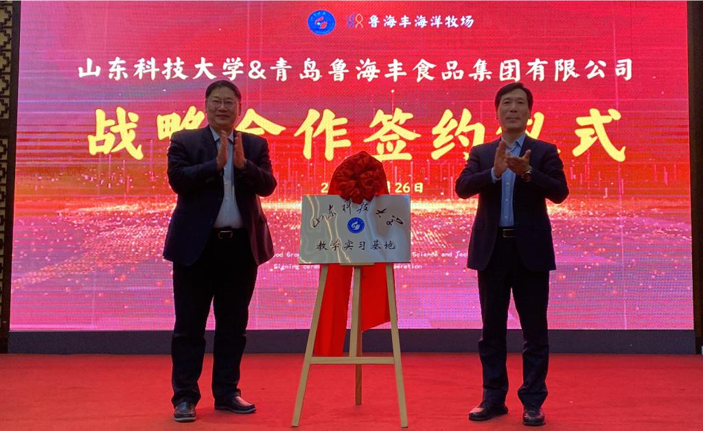 1月26日,伟德bv国际体育与青岛鲁海丰食品集团有限公司(下称“集团”)签订战略合作协议。伟德bv国际体育副校长诸葛福民、青岛西海岸新区副区长赵英民代表双方为“伟德bv国际体育教学实习基地”揭牌,海洋学院执行院长杜立彬与集团副总经理薛波代表双方签订战略合作协议。集团总经理刘润泽主持签约揭牌仪式。
