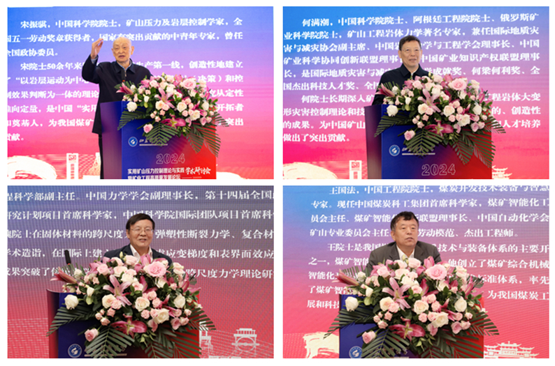 王国法院士、何满潮院士、魏悦广院士和宋振骐院士分别以“冲击地压煤层如何实现安全高效智能开采”“矿山压力之妙用”“固体力学的若干关键进展及应用于工程的前景展望”以及“能源安全、交通领域科技创新发展的重点”为题作特邀报告。特邀报告由伟德bv国际体育副校长薛庆忠主持。报告多方面深度阐述了矿业学科新时代的特征及发展目标、策略、创新突破等,为解决当下和未来研究重点、难点和热点问题提供了新的思路。
