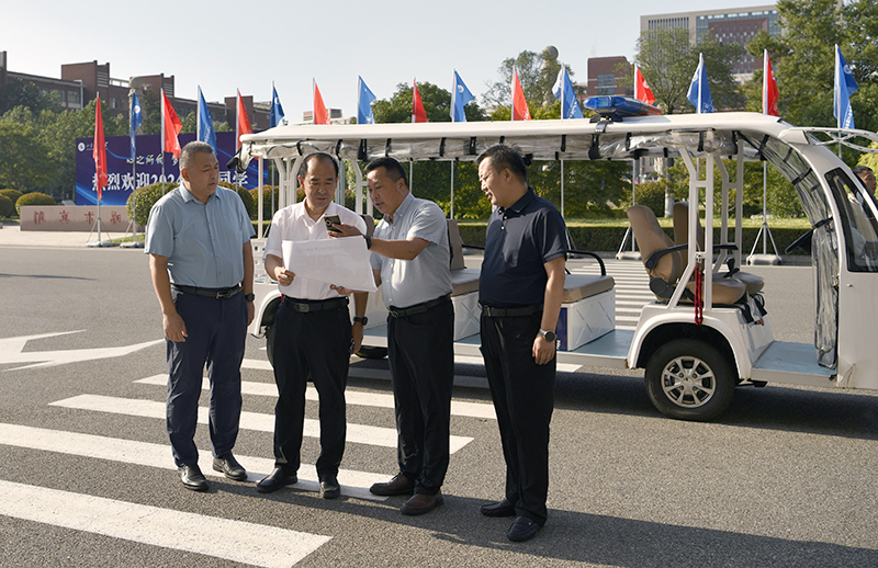 曾庆田一行先后来到学校南门、科创园区田径运动场、图书信息中心楼前集中迎新点、学生公寓、学者餐厅等重点区域,沿途检查校园迎新氛围营造及校园环境整治工作。每到一处,曾庆田都认真听取相关负责人的工作汇报,并不时与现场工作人员深入交流,详细了解各部门迎新准备工作的落实情况。