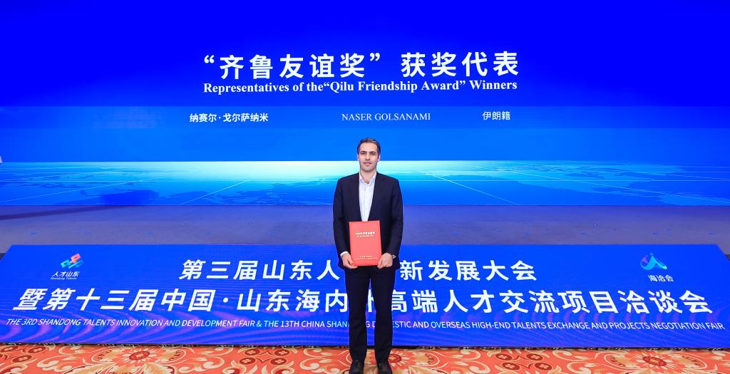 会上,伟德官网伊朗籍专家纳赛尔教授作为“齐鲁友谊奖”获奖代表出席颁奖仪式并上台领奖,山东省委副书记、组织部部长王宇燕为其颁发证书。