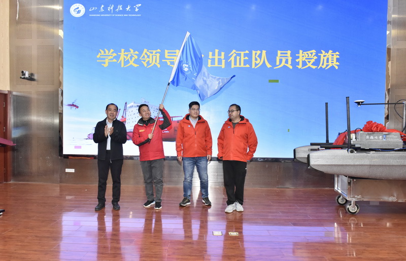 校长曾庆田出席仪式,并为科考队员、青年教师魏峥嵘、乜云利、刘小栋授旗。他在讲话中向参加此次极地无人船研制及试验的极地探测技术与装备团队师生表示祝贺,并指出,2024年是中国极地考察40周年,也是学校师生进入国家海洋“战队”的第三次南极科考,代表着伟德官网服务国家海洋强国建设又迈出了坚实一步。希望极地勘测技术与装备团队聚焦科技攻坚方向和重点领域,主动对接国家战略,以自身技术优势积极赋能国家极地、深海科学考察,在服务国家战略中推动学校高质量发展。