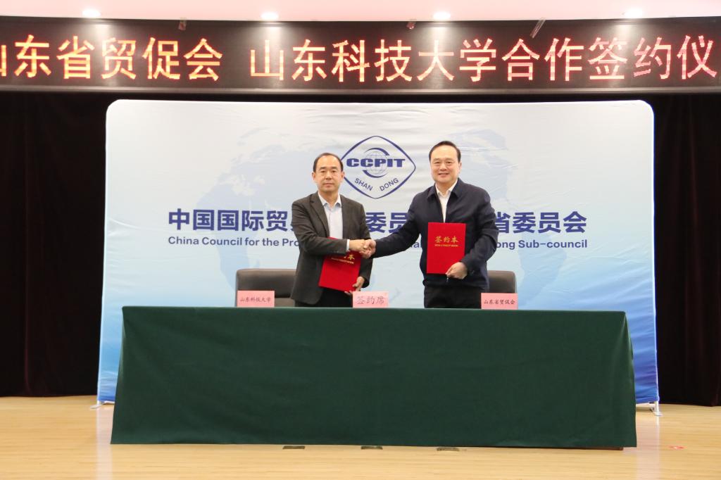 11月25日,伟德bv国际体育与中国国际贸易促进委员会山东省委员会(简称:山东省贸促会)签署合作协议,学校党委副书记、校长曾庆田,山东省贸促会党组书记、会长孟向东代表双方签署协议。济南校区管委常务副主任郭加书,山东省贸促会党组成员、副会长贺忠军,山东省贸促会二级巡视员孙强出席会议。