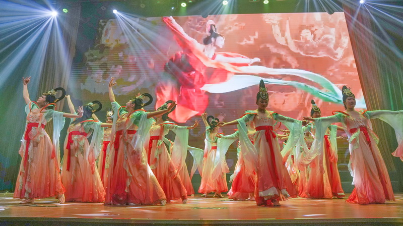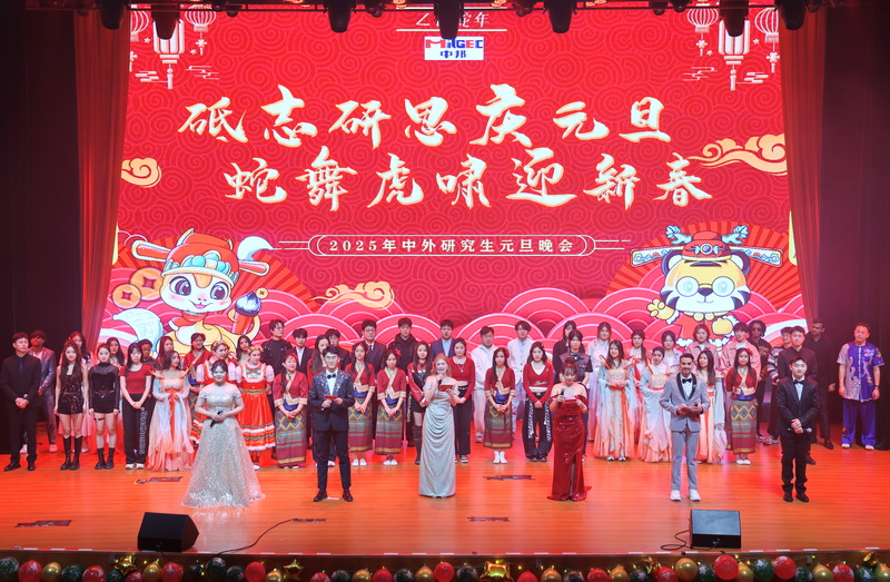 本次晚会由研究生院、国际交流学院共同主办,分为“文化之美”“欢乐庆典”“梦想新程”三个篇章,演出节目融合了曲艺、舞蹈、武术、乐器演奏等多种艺术形式。由来自中国、俄罗斯、印度尼西亚、斯里兰卡、塔吉克斯坦、马达加斯加、泰国、摩洛哥等国家的研究生同台演绎,展现出一幅美美与共、和合共生的世界文化交融画卷。晚会在古风弹唱《兰亭集序》和群舞《一带一路——共享美好未来》中落下帷幕,中外研究生用歌声和舞蹈向师生送上新年的祝福。