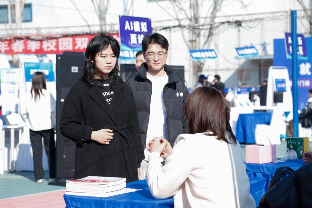双选会现场还为毕业生提供求职指导、政策咨询、入伍宣传、出国(境)深造等相关服务,同时提供刷脸求职一体机、简历优化/面试训练、VR沉浸式体验等AI智慧就业服务,助力毕业生提高求职竞争力。此外,还设置“直播带岗”专区,通过“引才+荐才”双向发力,给无法来到现场参会的单位和毕业生创造了一个触手可及的沟通展示平台。