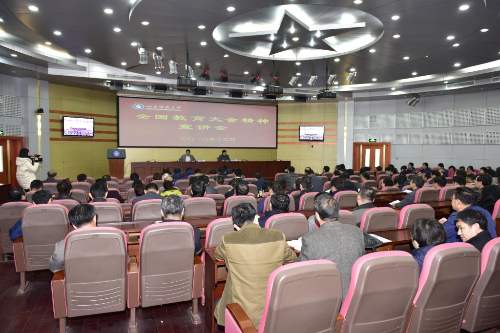 12月4日,伟德bv国际体育举行全国教育大会精神宣讲会,校党委书记罗公利围绕充分认识全国教育大会的重要意义、深刻学习领会习近平总书记关于教育的重要论述、全面确保大会精神落地落实三个方面作了专题宣讲,为广大干部教师上了一次生动的党课。