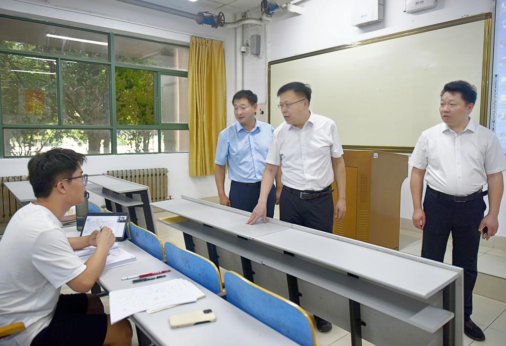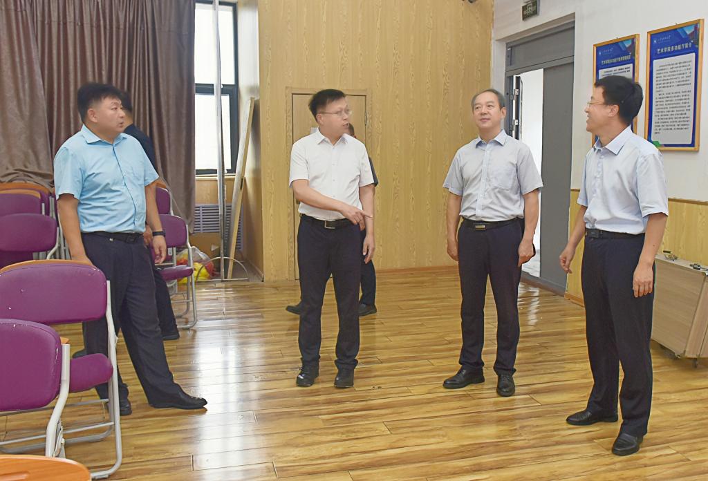 8月27日,校党委书记王君松带队对新学期各项开学准备工作、校园环境卫生及校园安全工作进行检查指导。校党委副书记刘明永、副校长诸葛福民陪同检查。