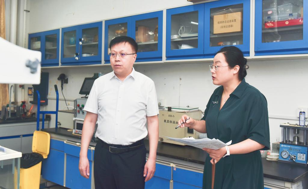 王君松一行先后深入学校南门、危化品库、实验室、教学楼、图书馆、学生公寓、学生餐厅、校医院等重点区域,沿途检查校园环境卫生和校园安全工作。每到一处,王君松都认真听取相关负责人的工作汇报,并不时与现场工作人员深入交流,详细了解各部门开学前准备工作落实情况及各环节安全管理、条件保障等情况,对做好新学期教学准备、卫生管理、后勤保障、校园安全等方面工作提出相关要求。