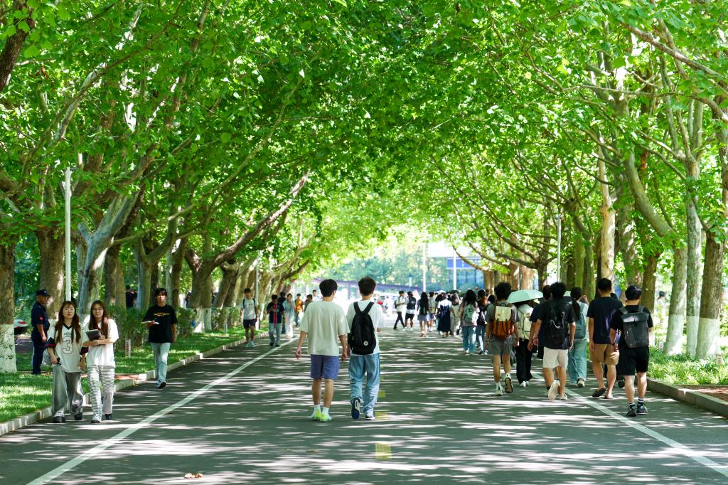 同学们结伴前往教室