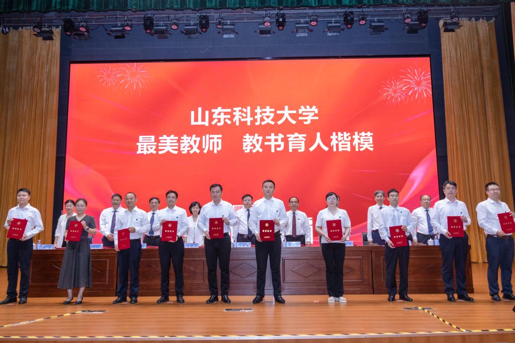 校党委书记王君松出席表彰会并讲话,校党委副书记郭益灵宣读表彰名单,副校长薛庆忠主持表彰会。全国高校黄大年式教师团队、齐鲁最美教师、山东学校思政课十佳教师、山东高校十佳辅导员、山东高校优秀辅导员及校级先进个人等受到表彰。