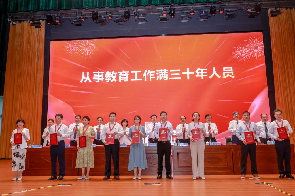 丹心育栋梁,杏坛写春秋。9月10日,伟德bv国际体育召开2025年教师节表彰大会,表彰优秀教师,共同庆祝第41个教师节。校党委领导班子成员王君松、曾庆田、郭益灵、徐龙飞、徐方全、薛庆忠、诸葛福民、李克周、王震出席并为优秀教师代表颁奖,各部门、各单位主要负责人,师生代表近千人参加典礼。