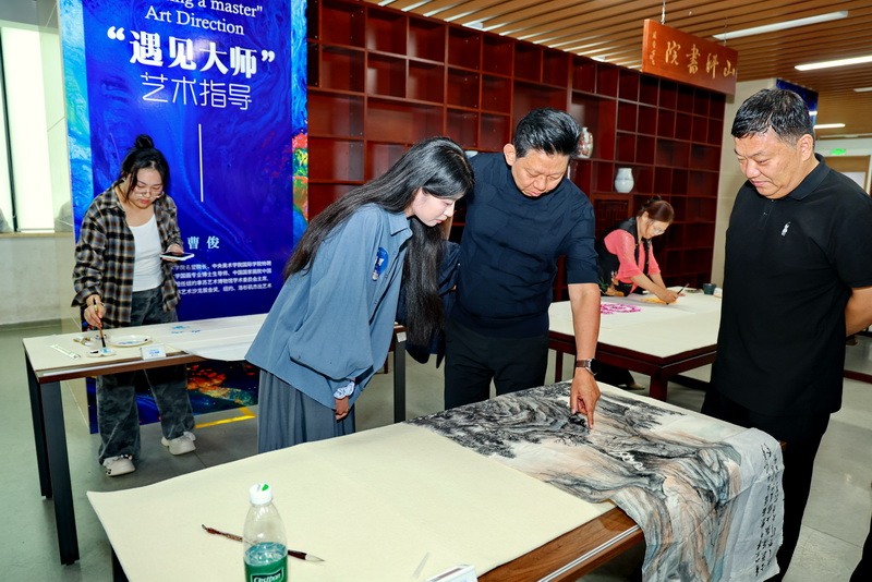 “您怎么看新的科技手段给艺术表达带来了更多可能?”“您当初选择‘弃理从艺’的精神动力是什么?”“在碎片化时间里,我们可以通过什么方式提升艺术感知能力?”“‘曹俊蓝’是如何研究出来的?”……曹俊结合自己求学、创作的经历,一一解答师生们的疑惑,为师生们带来了一场精彩纷呈的分享,引发了师生们的强烈共鸣,现场掌声不断,气氛热烈。