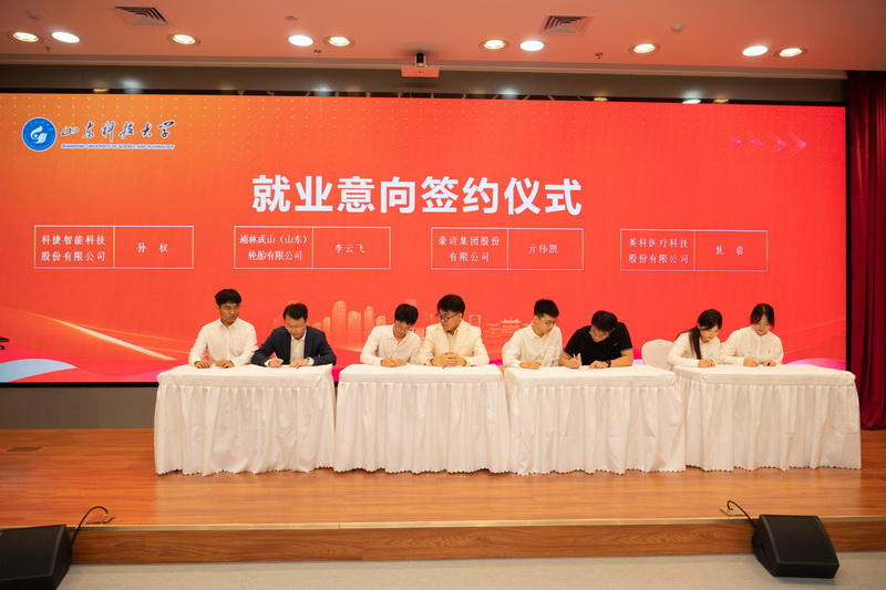 当天,学校举办了“凝心聚力 携手共赢”政校企对接会。会上,学校与江苏吴江东太湖生态旅游度假区、苏州高新区、浙江嵊州市、东营市东营区4个地区共建引才工作站。与科捷智能、浦林成山等8家企业共建就业实践基地,为三峡集团新疆分公司、中煤矿建、英搏尔、海康威视等10家用人单位聘任校园引才大使。豪迈、英科等4家企业与26届毕业生代表现场签订就业意向书。后续,学校将依托这些引才工作站与就业实践基地,组织学生“走出去”开展家乡名企行、送才入企等系列活动,通过“实地参观+岗位体验+校地企对话”的形式,让学生感受地方发展和企业文化。同时,企业聘任的校园引才大使也将做好桥梁纽带,源源不断将优质岗位、政策“引进来”带到同学们身边。