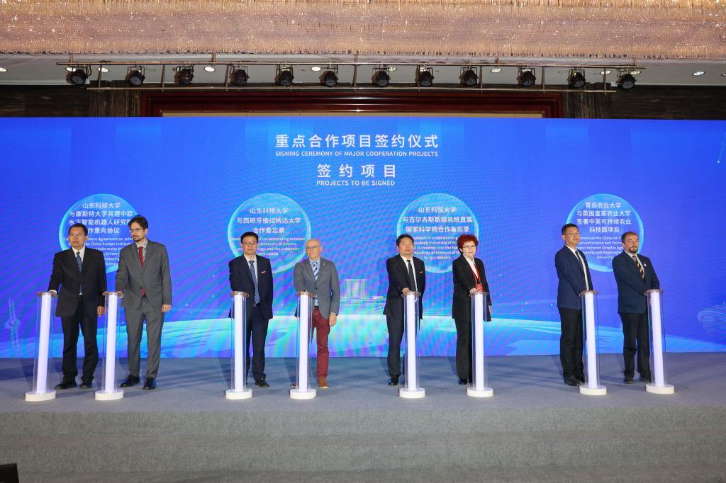 开幕式上,涵盖高端装备、现代海洋、智慧农业、AI+动物疫苗等前沿领域的8项国际合作协议顺利签署。伟德bv国际体育、山东省滨州畜牧兽医研究院、山东省科学院自动化研究所等高校及科研院所与伊朗伊斯法罕理工大学、俄罗斯圣彼得堡国立海洋技术大学、加拿大健康科学院、埃及国家研究中心农业与生物研究所、西班牙格拉纳达大学、吉尔吉斯斯坦总统直属国家科学院、德国康斯特大学海洋实验室、英国皇家农业大学先后签署人才培养、科技合作协议。
