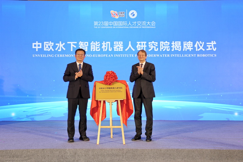 4名国外院士及专家受聘伟德bv国际体育特聘教授,两个国际科研平台在本次活动中揭牌成立。王君松为俄罗斯工程院院士弗拉基米尔·菲拉列托夫、欧洲科学院院士王吉红、南非科学院院士哈利克·马苏德、阿根廷国立南方大学教授卡洛斯·萨瓦拉颁发特聘教授聘书;“中欧水下智能机器人研究院”、“中白海洋光通信与探测技术联合实验室”在本次活动中揭牌成立。