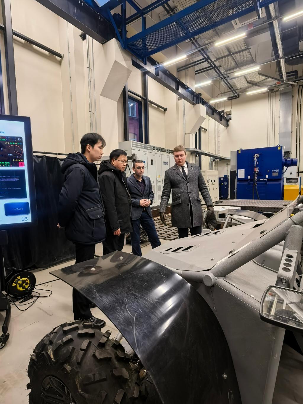 访问莫斯科鲍曼国立技术大学期间,代表团与国际事务主管叶戈罗夫·安东·阿列克谢耶维奇、水下航行器与机器人教研室主任维利切夫·瓦季姆·维克托罗维奇会谈,商讨在机械工程、机器人系统、智能制造等领域扩大师生交流规模,联合举办国际会议,开展短期语言培训,促进人文交流等。代表团实地考察了该校能源污染环境保护实验室以及信息技术大楼、自然保护技术与绿色区域大楼相关教学科研设施。