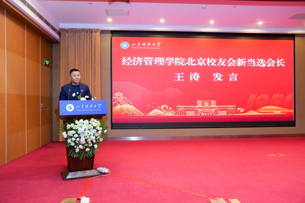 王君松代表学校向全体在京校友致以诚挚问候和新春祝福,并对经济管理学院北京校友会的成立表示热烈祝贺。他简要介绍了学校近年来在学科建设、人才培养、科学研究、师资队伍等方面取得的显著成就,并对校友们长期以来对母校的关心支持表示感谢。王君松指出,广大校友是学校最宝贵的财富和最坚实的依靠,校友与母校已经结成了牢不可破的情感共同体,命运共同体,发展共同体和文化共同体。他强调,学校实施了“三个一”校友工作机制,建立“学校主导、学院主体、校院联动”的工作体系,把“每到一处必会校友”作为工作传统。他特别提到,2026年将迎来学校建校75周年,诚邀广大校友在金秋时节重返母校参加学校高质量发展大会,共襄盛举,共话发展。