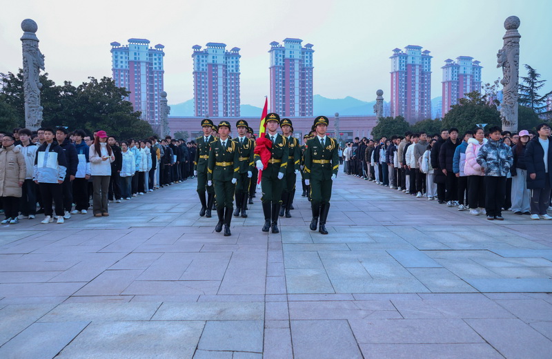 晨曦微露,学校举行新学期升旗仪式,五星红旗在雄壮的国歌声中冉冉升起,师生们肃立注目,以庄严的仪式感开启新学期的征程。