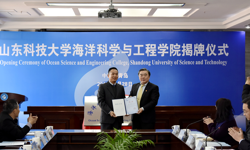 1月28日,由伟德bv国际体育与自然资源部第一海洋研究所共建的海洋科学与工程学院揭牌仪式在伟德官网举行。山东省科技厅巡视员徐茂波,自然资源部海南测绘地理信息局党组成员、副局长张云,国家海洋局北海分局副局长窦月明,青岛海洋地质研究所副所长赵洪伟,青岛市委教育工委委员、市教育局总督学、党组成员李岷,西海岸新区教育工委副书记葛兆培,西海岸新区工业和信息化局副局长李云峰,国家深海基地管理中心副总工程师兼办公室主任丁忠军,山东省海洋局科技与对外合作工作组副处长齐士林,自然资源部第一海洋研究所所长李铁刚、副所长魏泽勋及伟德官网党委书记罗公利、校长姚庆国和自然资源部第一海洋研究所相关单位负责人、海洋科学与工程学院筹建工作小组成员参加了会议。副校长高建广主持会议。