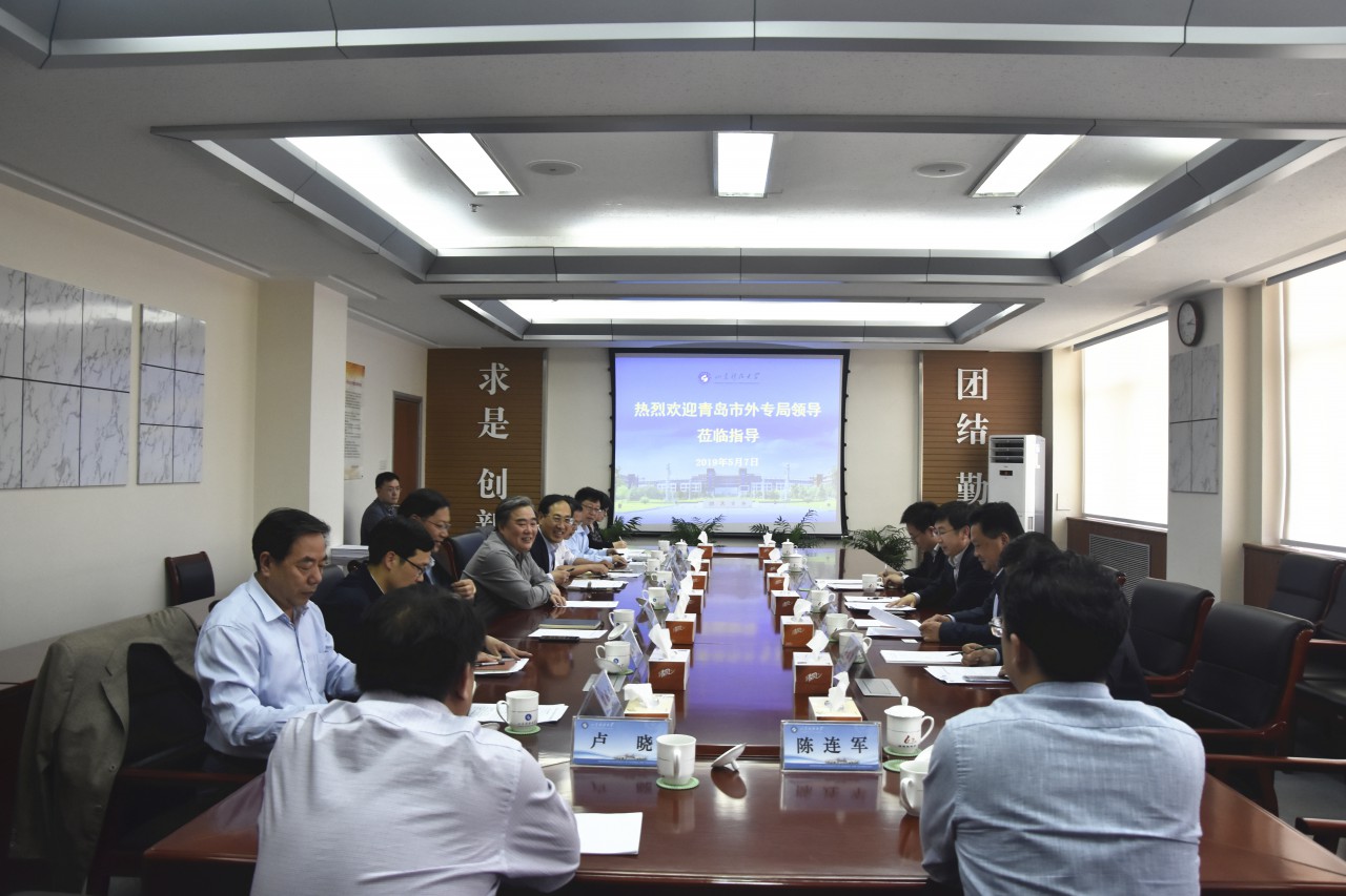 5月7日,青岛市外专局局长于炳波一行来伟德官网调研高等学校学科创新引智基地建设工作,校党委书记罗公利、校长姚庆国、副校长孙鹤汀会见了于炳波一行。