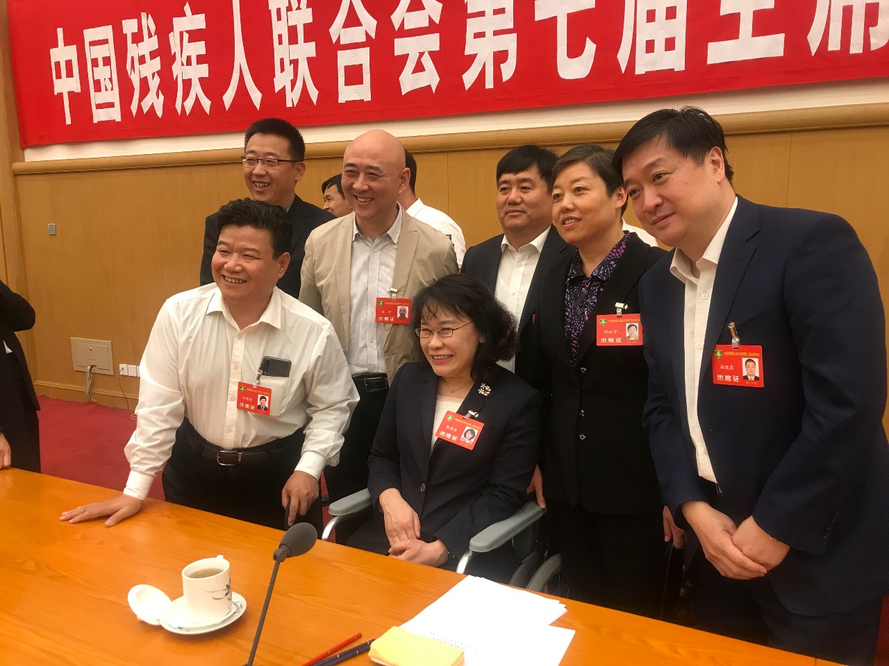 5月17日,汤建泉参加中国残联第七届主席团委员会第二次会议,并与中国残联主席张海迪等合影。