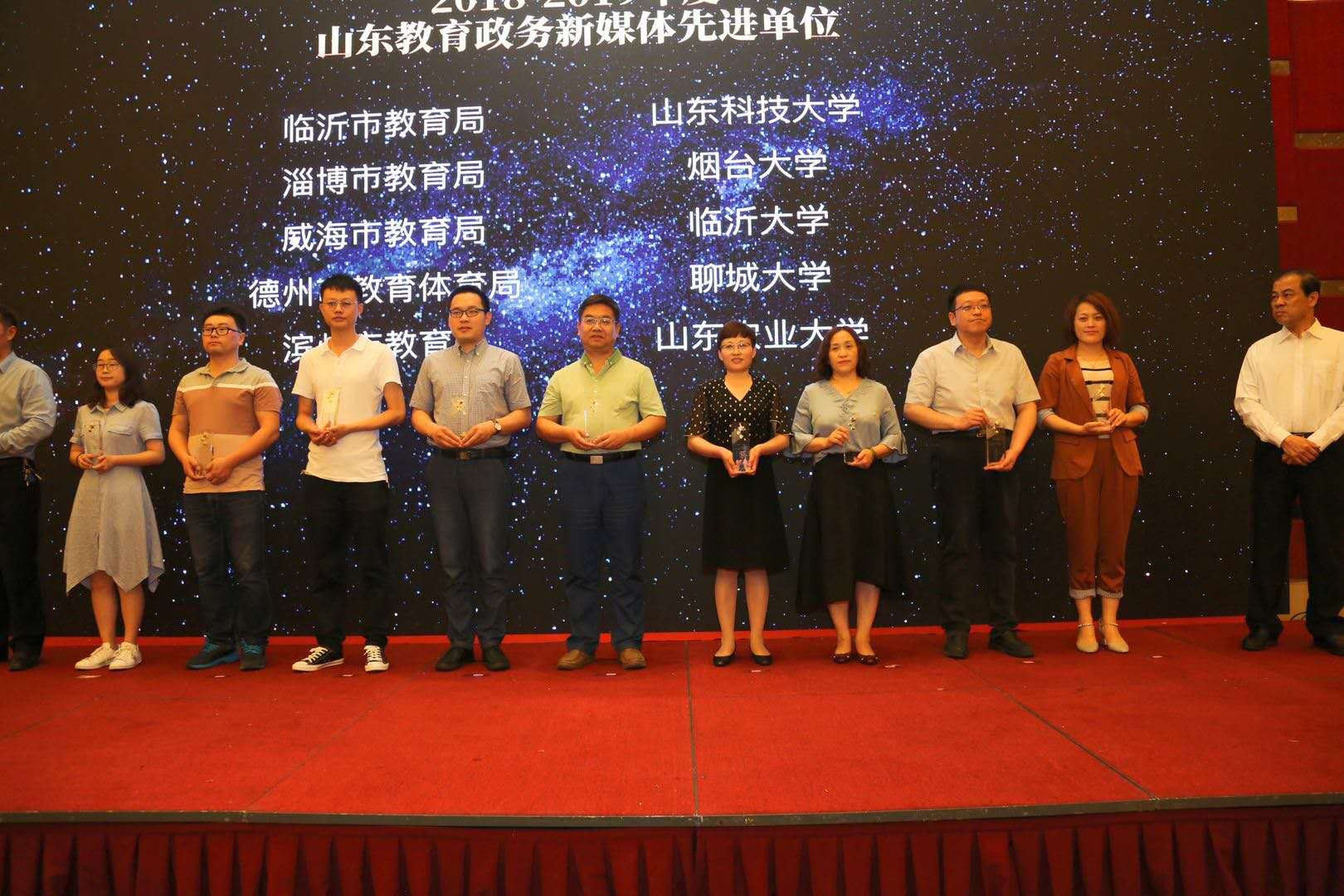 5月17日,2019山东教育政务新媒体联盟年度盛会在济南举行。伟德官网获“2018—2019年度山东教育政务新媒体先进单位”称号,受到会议通报表扬。省委教育工委常务副书记,省教育厅厅长、党组书记邓云锋出席并讲话,省委教育工委委员,省教育厅总督学、党组成员孟庆旭,山东教育电视台台长、党委书记邢顺峰出席并为受到表扬的先进单位颁奖。