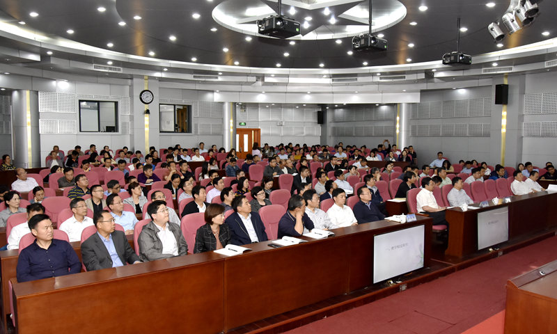 校党委领导班子成员罗公利、高建广、李克周、陈涛出席报告会,报告由校党委副书记尹华主持。