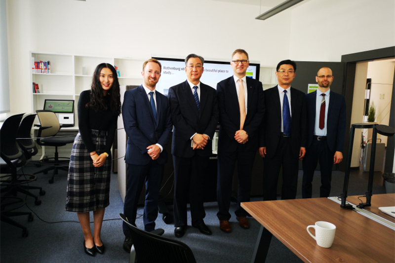 在德国安斯巴赫应用技术大学,校务委员会主席Ing.Ulf Emmerich,经济工程系负责人Nobert Kaiser,应用技术系教授Hans Reimann,语言中心负责人Christian Gebhard及罗滕堡校区负责人Domini Koegel热情欢迎代表团一行。双方回顾了两校十几年来的友好合作历程,并就经济类专业进一步开展硕士合作项目等进行了详细的磋商。6月17日,中德生态园驻德国代表处赵卫及巴伐利亚州对华高教中心主任Philipp Dengel也参与了会谈,两校三方就去年达成共建微校园项目的意向进行了深入探讨并达成了一致意向。代表团在安斯巴赫应用技术大学经济工程系及化工系负责人的陪同下,参观了罗滕堡校区及相关实验室。代表团还与伟德官网在安斯巴赫应用技术大学的学生进行了座谈。