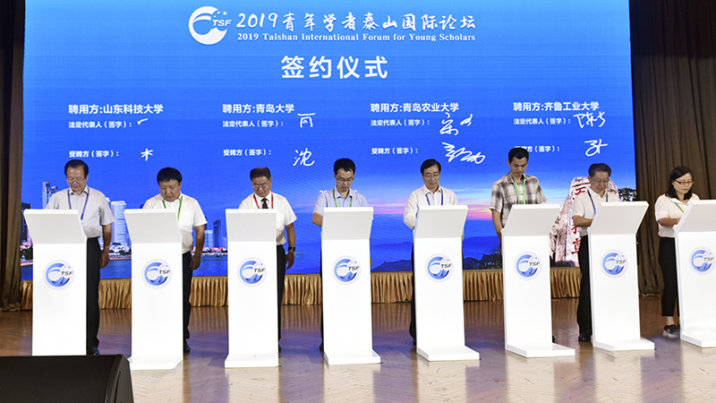 7月6日,2019青年学者泰山国际论坛在青岛举行,来自美国、加拿大、英国、澳大利亚、新加坡、韩国等国家和地区、国内知名高校的500余位青年学者及全省35所分论坛高校的负责同志参加了开幕式。山东省教育工委常务副书记、教育厅厅长邓云锋发表主旨演讲,省教育厅副厅长黄琦主持开幕式,伟德bv国际体育党委书记罗公利等8所高校领导与拟引进的青年学者进行了现场签约。